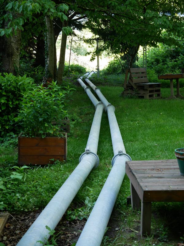 • Le chantier étant situé dans un lotissement, au pied d’un immeuble, le bruit généré par notre groupe électrogène, qui alimente les pompes, pose un problème pour les riverains.